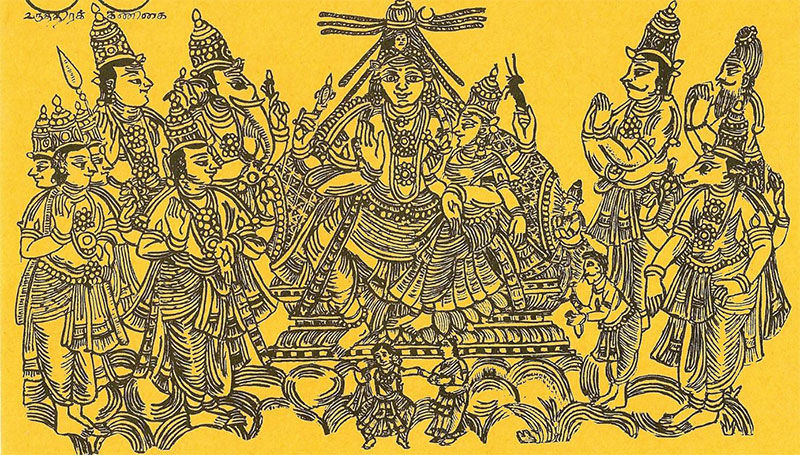 Four brothers were the master minds behind the codification of this format and its training curriculum: Ponniah, Chinniah, Shivanandam and Vadivelu formed together the Tanjore Quartet (18th Cent.CE); their heritage continues in Smt.T. Balasaraswati’s style through her teacher Kandappa Pillai (1899-1942) and his son Ganesan Pillai (1924-1987).